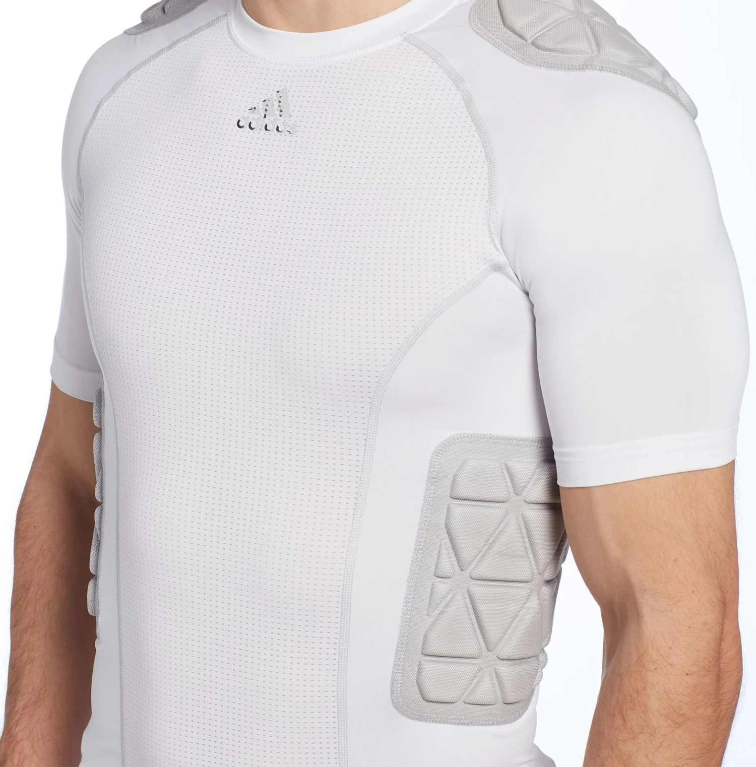 Protect yourself during practice or during the game with the Adidas® Adult Techfit Padded Football Shirt. This compression shirt not only provides protection in key impact zones but also adds the benefits of compression technology. Wearing the Adidas® Adult Techfit Padded Football Shirt as a base layer adds protection all while keeping you cool with the mesh panels for breathability.